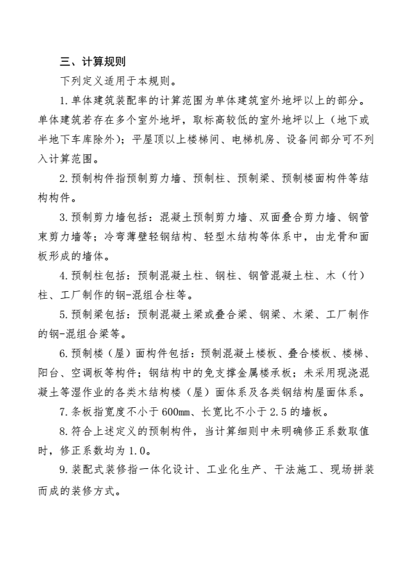 《四川省裝配式建筑裝配率計算細則(試行)》實施以來,對全省裝配式建筑裝配率計算起到了積極的指導和規范作用。為進一步推動我省裝配式建筑的發展,規范裝配率計算,提升標準化建設水平,推進系統集成技術發展應用,我廳組織相關單位進行了修訂,并經專家審查通過,形成了《四川省裝配式建筑裝配率計算細則》,現予印發,自 2020 年 10 月 1 日起實施。
